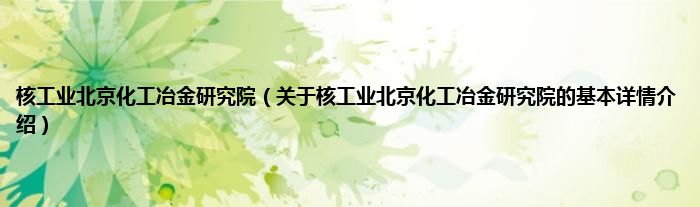 本文关于核工业北京化工冶金研究院的基本详情介绍就讲解完毕,希望对大家有所帮助。