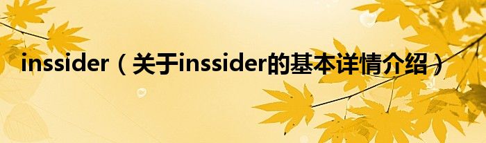 本文关于inssider的基本详情介绍就讲解完毕,希望对大家有所帮助。