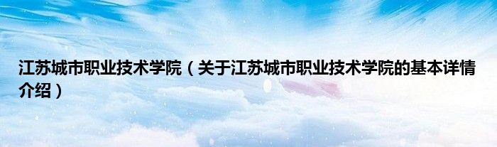 本文关于江苏城市职业技术学院的基本详情介绍就讲解完毕,希望对大家有所帮助。