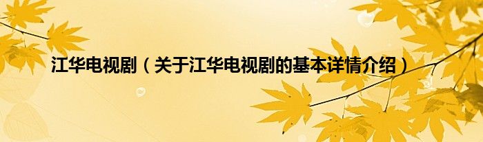 本文关于江华电视剧的基本详情介绍就讲解完毕,希望对大家有所帮助。