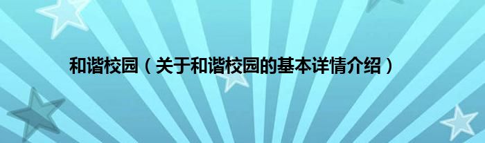 本文关于和谐校园的基本详情介绍就讲解完毕,希望对大家有所帮助。