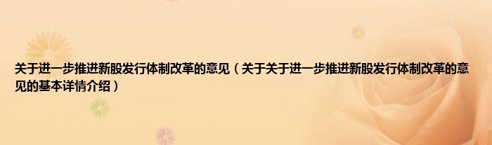 本文关于关于进一步推进新股发行体制改革的意见的基本详情介绍就讲解完毕,希望对大家有所帮助。
