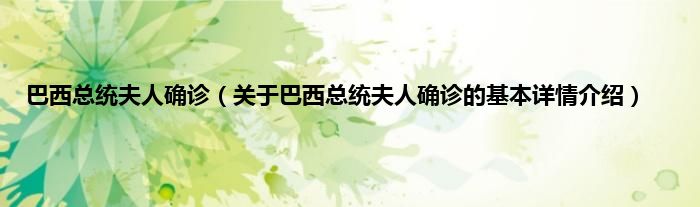 本文关于巴西总统夫人确诊的基本详情介绍就讲解完毕,希望对大家有所帮助。