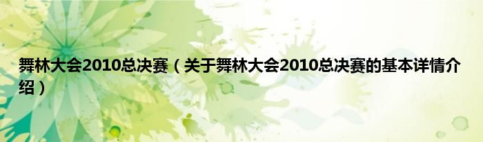 本文关于舞林大会2010总决赛的基本详情介绍就讲解完毕,希望对大家有所帮助。