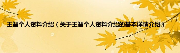 本文关于王智个人资料介绍的基本详情介绍就讲解完毕,希望对大家有所帮助。