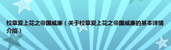 本文关于校草爱上花之帝国威廉的基本详情介绍就讲解完毕,希望对大家有所帮助。