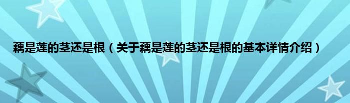 本文关于藕是莲的茎还是根的基本详情介绍就讲解完毕,希望对大家有所帮助。