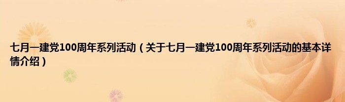 本文关于七月一建党100周年系列活动的基本详情介绍就讲解完毕,希望对大家有所帮助。