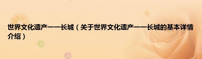 本文关于世界文化遗产一一长城的基本详情介绍就讲解完毕,希望对大家有所帮助。