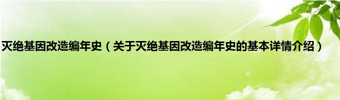 本文关于灭绝基因改造编年史的基本详情介绍就讲解完毕,希望对大家有所帮助。