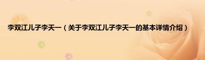 本文关于李双江儿子李天一的基本详情介绍就讲解完毕,希望对大家有所帮助。
