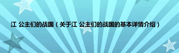 本文关于江 公主们的战国的基本详情介绍就讲解完毕,希望对大家有所帮助。