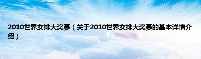 本文关于2010世界女排大奖赛的基本详情介绍就讲解完毕,希望对大家有所帮助。