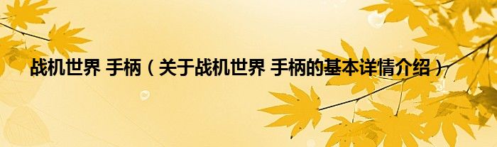 本文关于战机世界 手柄的基本详情介绍就讲解完毕,希望对大家有所帮助。