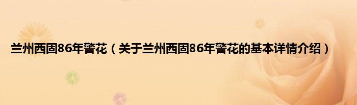 本文关于兰州西固86年警花的基本详情介绍就讲解完毕,希望对大家有所帮助。