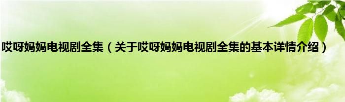 本文关于哎呀妈妈电视剧全集的基本详情介绍就讲解完毕,希望对大家有所帮助。