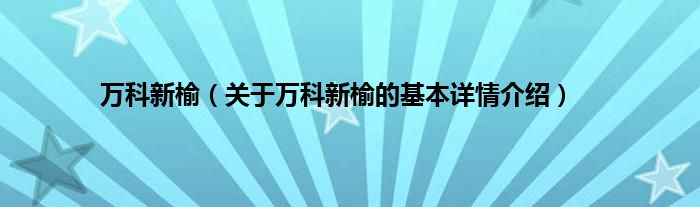 本文关于万科新榆的基本详情介绍就讲解完毕,希望对大家有所帮助。