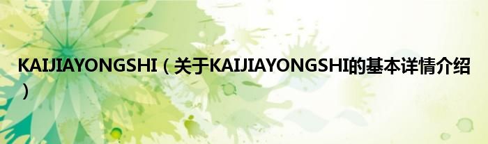 本文关于KAIJIAYONGSHI的基本详情介绍就讲解完毕,希望对大家有所帮助。