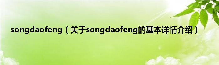 本文关于songdaofeng的基本详情介绍就讲解完毕,希望对大家有所帮助。