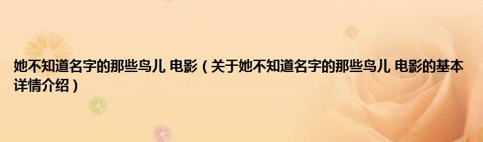 本文关于她不知道名字的那些鸟儿 电影的基本详情介绍就讲解完毕,希望对大家有所帮助。