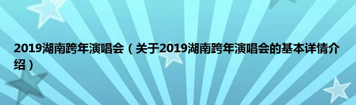 本文关于2019湖南跨年演唱会的基本详情介绍就讲解完毕,希望对大家有所帮助。
