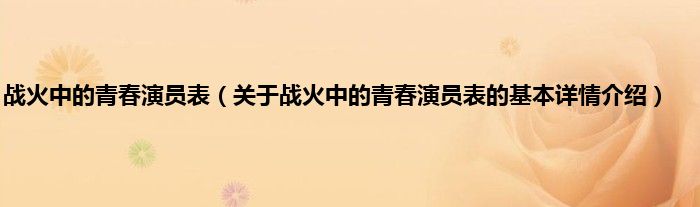 本文关于战火中的青春演员表的基本详情介绍就讲解完毕,希望对大家有所帮助。