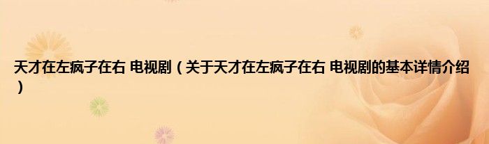 本文关于天才在左疯子在右 电视剧的基本详情介绍就讲解完毕,希望对大家有所帮助。