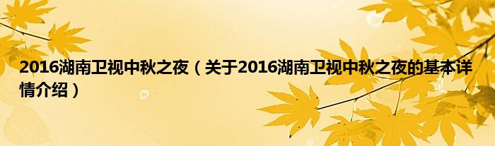 本文关于2016湖南卫视中秋之夜的基本详情介绍就讲解完毕,希望对大家有所帮助。