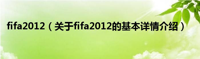本文关于fifa2012的基本详情介绍就讲解完毕,希望对大家有所帮助。