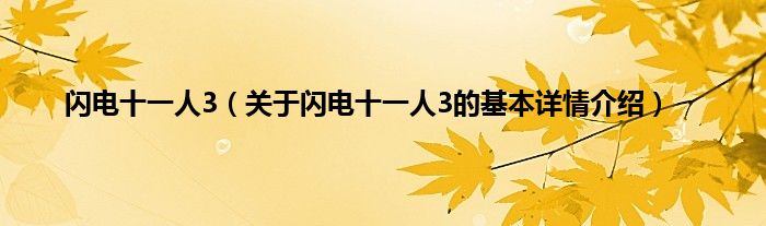 本文关于闪电十一人3的基本详情介绍就讲解完毕,希望对大家有所帮助。