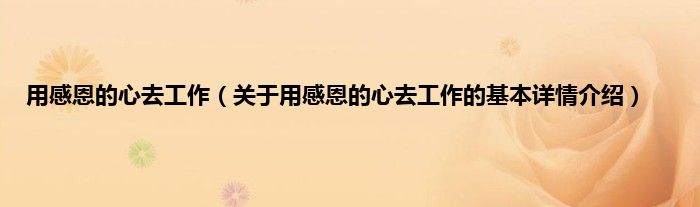 本文关于用感恩的心去工作的基本详情介绍就讲解完毕,希望对大家有所帮助。