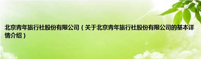本文关于北京青年旅行社股份有限公司的基本详情介绍就讲解完毕,希望对大家有所帮助。