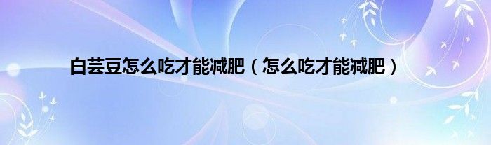 以上就是【白芸豆怎么吃才能减肥,怎么吃才能减肥】相关内容。
