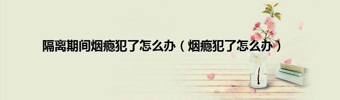 大家好,小问来为大家解答以上问题。隔离期间烟瘾犯了怎么办,烟瘾犯了怎么办这个很多人还不知道,现在让我们一起来看看吧!