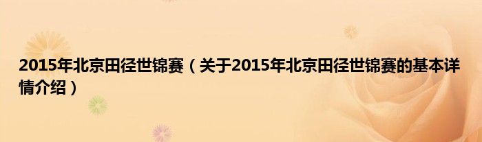 本文关于2015年北京田径世锦赛的基本详情介绍就讲解完毕,希望对大家有所帮助。