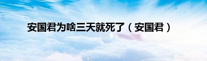 大家好,小问来为大家解答以上问题。安国君为啥三天就死了,安国君这个很多人还不知道,现在让我们一起来看看吧!
