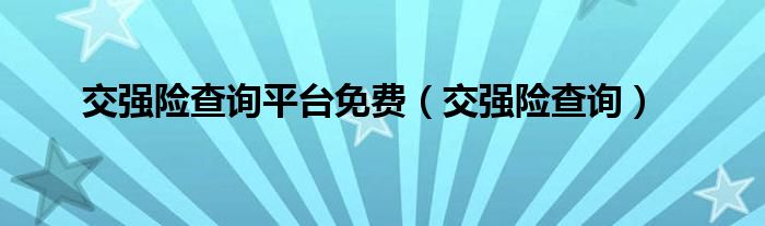 以上就是【交强险查询平台免费,交强险查询】相关内容。