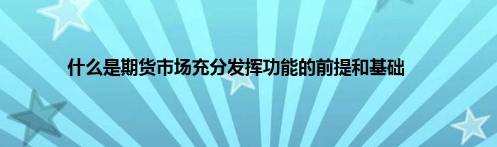 大家好,小问来为大家解答以上问题。什么是期货市场充分发挥功能的前提和基础这个很多人还不知道,现在让我们一起来看看吧!