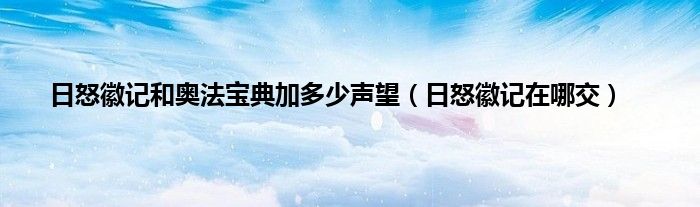 日怒徽记和奥法宝典加多少声望(日怒徽记在哪交)