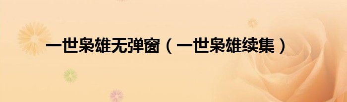 大家好,小问来为大家解答以上问题。一世枭雄无弹窗,一世枭雄续集这个很多人还不知道,现在让我们一起来看看吧!