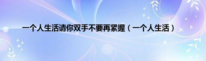 大家好,小问来为大家解答以上问题。一个人生活请你双手不要再紧握,一个人生活这个很多人还不知道,现在让我们一起来看看吧!