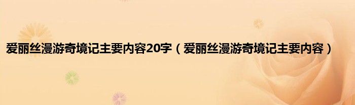 以上就是【爱丽丝漫游奇境记主要内容20字,爱丽丝漫游奇境记主要内容】相关内容。