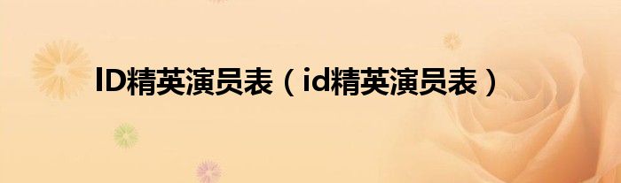 lD精英演员表(id精英演员表)
