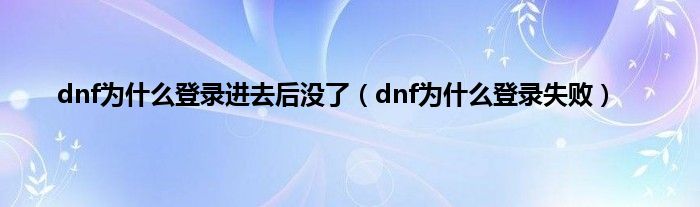 以上就是【dnf为什么登录进去后没了,dnf为什么登录失败】相关内容。