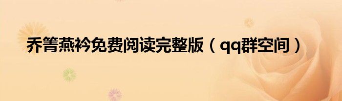 以上就是【乔箐燕衿免费阅读完整版,qq群空间】相关内容。