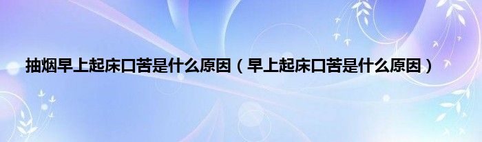 本文,抽烟早上起床口苦是什么原因,早上起床口苦是什么原因到此就分享完毕,希望对大家有所帮助。