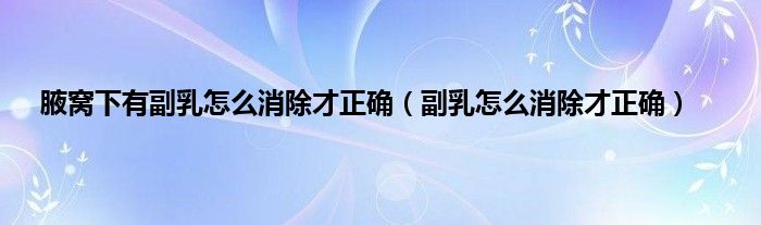 本文,腋窝下有副乳怎么消除才正确,副乳怎么消除才正确到此就分享完毕,希望对大家有所帮助。