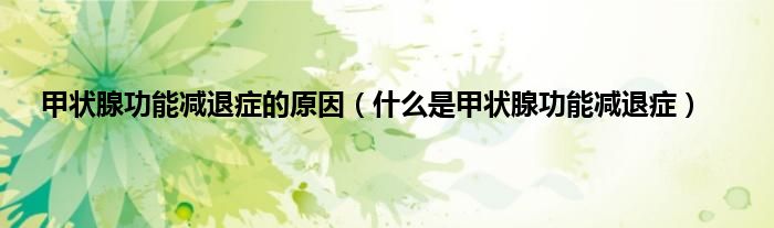 本文,甲状腺功能减退症的原因,什么是甲状腺功能减退症到此就分享完毕,希望对大家有所帮助。