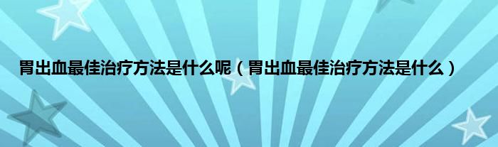 大家好,胃出血最佳治疗方法是什么呢,胃出血最佳治疗方法是什么很多人还不知道,现在让我们一起来看看吧!