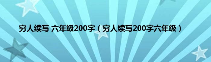 大家好,小问来为大家解答以上问题。穷人续写 六年级200字,穷人续写200字六年级这个很多人还不知道,现在让我们一起来看看吧!